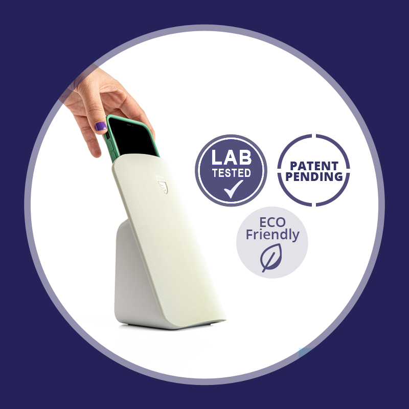 Elvy Charger is the pro-sleep device that every room needs. Blocking up to 95% of electromagnetic radiation emitted from phone and charger that interferes with alpha frequency brain waves which are vital for our sleep. Shielding from blue light that interferes with our circadian rhythm, and balancing between our tech habits and a healthy well-being.